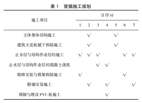 為確保穿插施工方案在實際施工中可起到一定效果,應對不同穿插施工環節的勞動力資源做好對 應的規劃,包括在不同施工環節如何更好地組織施 工材料、合理調配施工過程中的人力資源等。隻有做好對多個環節的合理化調配,才能避免由於個別施工工序規劃不當導致的整體施工工期拖延問題。同 時,應對工程施工中的所有技術人員進行交底,並定 期進行工程匯總,要求不同部門的施工人員匯報現 場施工進度,以掌握工程實際實施情況,便於後期施 工方對工程實施進度進行及時調整。此外,穿插施工過程中做好防水工作,包括門窗防水、伸縮縫防水、變形縫防水等,並完善建築結構排水渠道。在穿插施工中,應注意對施工技術的不斷更新與調整,隻有不斷嚐試將新技術引進工程實際,才能確保實施的工程項目可滿足建築市場可持續發展需求。